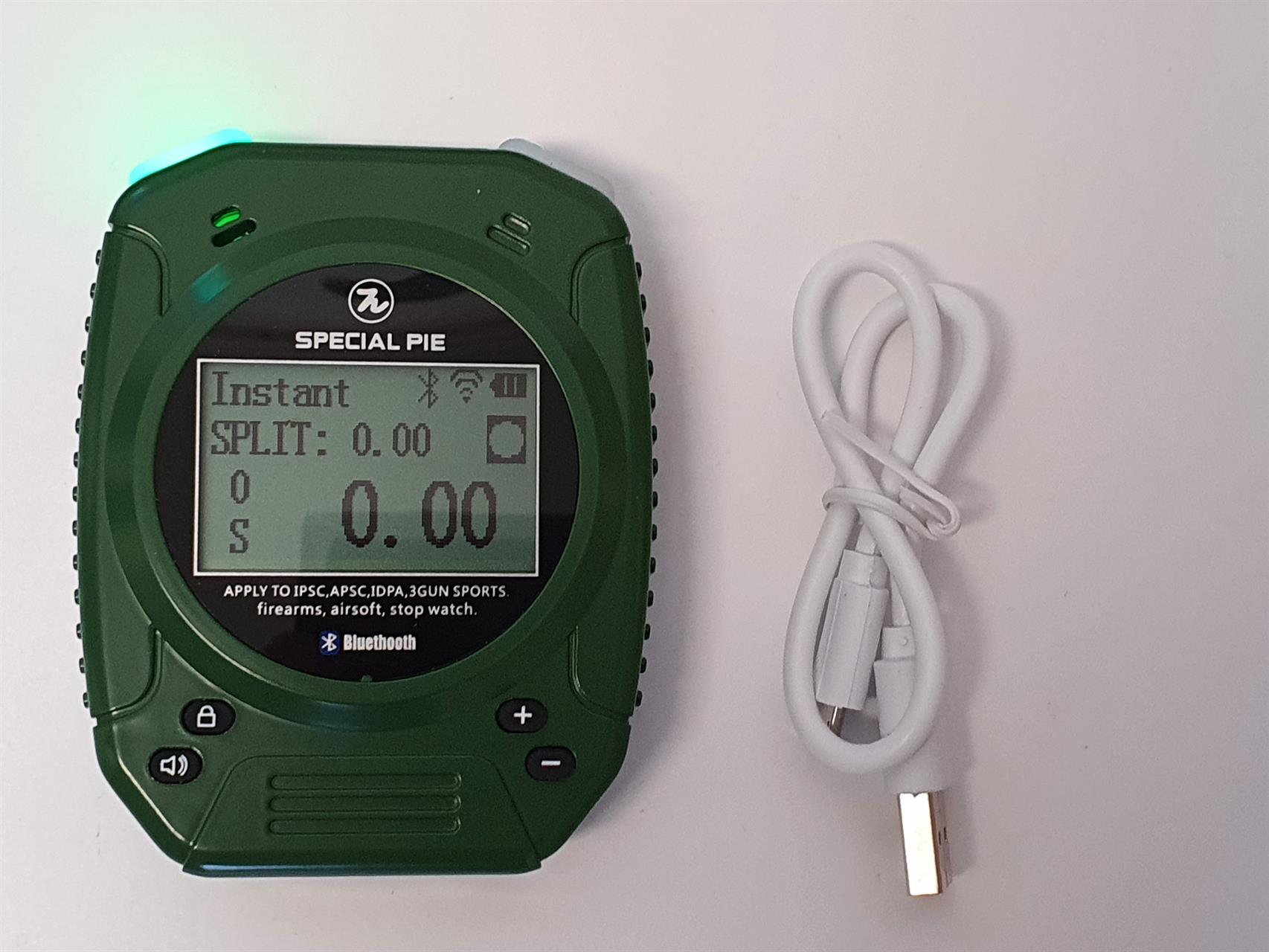 Paketti sisältää stop platen, timerin, laturin stoppiplatelle ja USB-latauskaaplein timerille. Timer ydistyy stoppiplateen langattomasti. Timerissa myös bluetooth, jolla timer voidaan yhdistetää Practiscoreen.